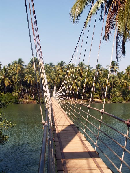 In de tussentijd is er veel gebeurd! Ik heb Rajini en Jan uit Nederland ontmoet, zie www.udupia.com. Ze hebben een geweldig paleisje gebouwd voor de mannen van Spandana! Vier jaar hard werken in NL, lang niet iedereen doet ze dat na! Ze hebben me er rondgeleid en we zijn nog naar Malpe Beach geweest, waar we terecht kwamen in een landelijk dorpje gelegen naast een rivier. Er was daar een hele mooie hangbrug!