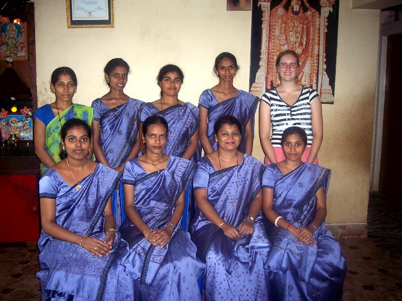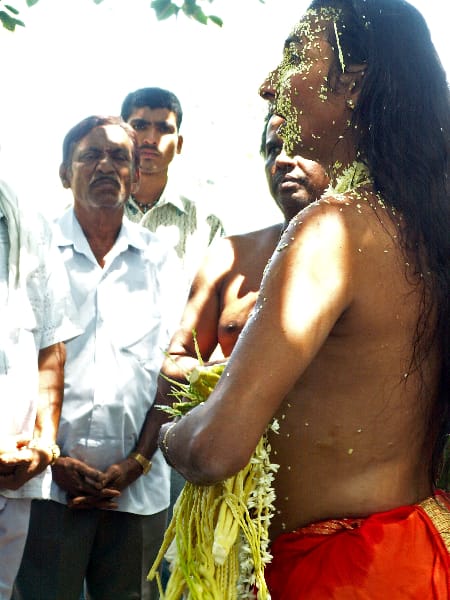 Zaterdag overdag ging ik samen met mijn gastgezin moeder naar haar geboorteplaats. Er waren wat problemen in de familie, en ze hadden om raad gevraagd. Nu werd er een speciale pooja gehouden, waarbij de god (in de vorm van een cobra) in de mens kwam. Best eng om te zien! Hij ging helemaal trillen en drukte telkens bloemen in zijn gezicht, waardoor hij helemaal onder kwam te zitten. Daarna ging hij praten met de familie en heeft hij (als het goed is) oplossingen gegeven. Toen de god weer uit hem was, kreeg hij mij in de gaten. Hij schenkte me een tender coconut (de groene die je kan drinken), een heerlijke glanzende rode appel en heel erg veel jasmijn bloemen die in mijn haar werden gedaan. Daarna moest ik knielen en de grond aanraken voor zijn voeten. Was wel erg apart allemaal… Omdat het vliegveld op de terugweg was, ben ik eerst met mensen mee geweest naar hun huis. Ze verbouwden hun eigen rijst, en vertelden dat de mensen die zo hard op hun land werken maar 2 euro en een maaltijd per dag verdienen! Dat zou je bij ons echt niet voor kunnen stellen…