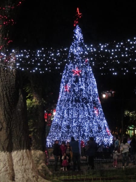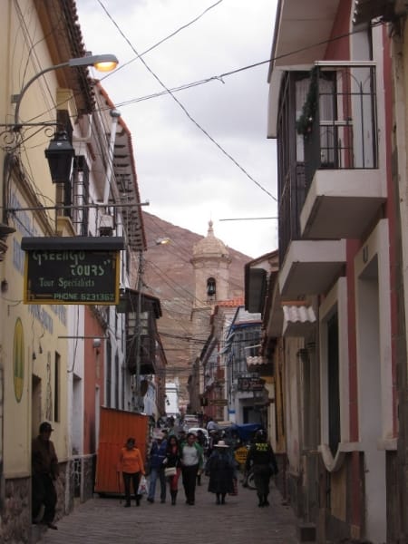 Potosi is klein maar fijn, met verschillende kerkjes, koloniale gebouwen en natuurlijk een centraal plein. Hier hebben we een tijdje op een bankje gezeten om te kijken hoe ze alle lichtjes en kerstversiering ophingen. We kwamen er ook achter dat er de volgende dag geen bussen naar Tupiza reden, dus besloten we alsnog uit te checken en ’s avonds een bus te nemen. Dat kwam eigenlijk wel goed uit want we wilden liever niet nog een nacht in een keihard bed doorbrengen. We voelden ons nog steeds niet helemaal lekker en waren aan de diarree. Als dat maar goed ging…